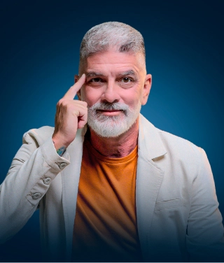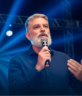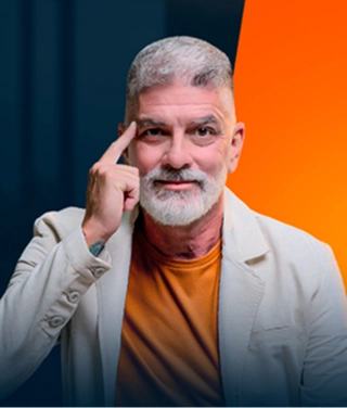 Foi premiado como Melhor Palestrante da Região em dois mil e vinte e três, reconhecimento conquistado pelo impacto que gera e pela profundidade simples e aplicável de seus métodos.